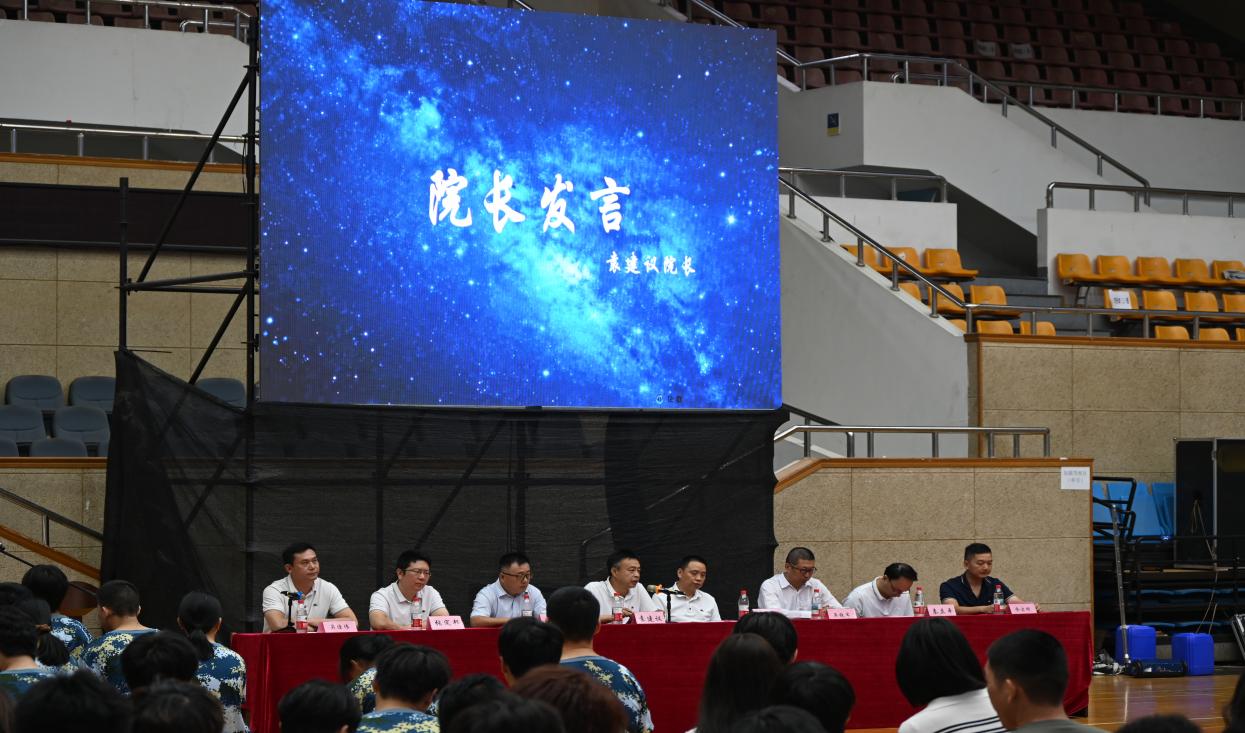 院长袁建议在发言中,对2025级新生的到来表示热烈欢迎,他从专业发展、个人成长等维度,寄语新生们要锚定目标、深耕学业、全面发展。黄石市市政建设集团有限公司总经理王仪德也登台致辞,他结合行业发展前景,鼓励土木学子们夯实专业基础,未来积极投身市政建设领域,实现个人价值与社会价值的统一。蔡诗怡作为新生代表发言,她分享了初入校园的憧憬与期待,表示将以勤奋为笔、以梦想为墨,在大学舞台书写青春华章;蔡纪天翔作为优秀学生代表,结合自身成长经历,鼓励新生们积极探索、勇于挑战;张鹏远作为新生班主任,以师长的视角为新生们规划大学生涯提出了恳切建议。