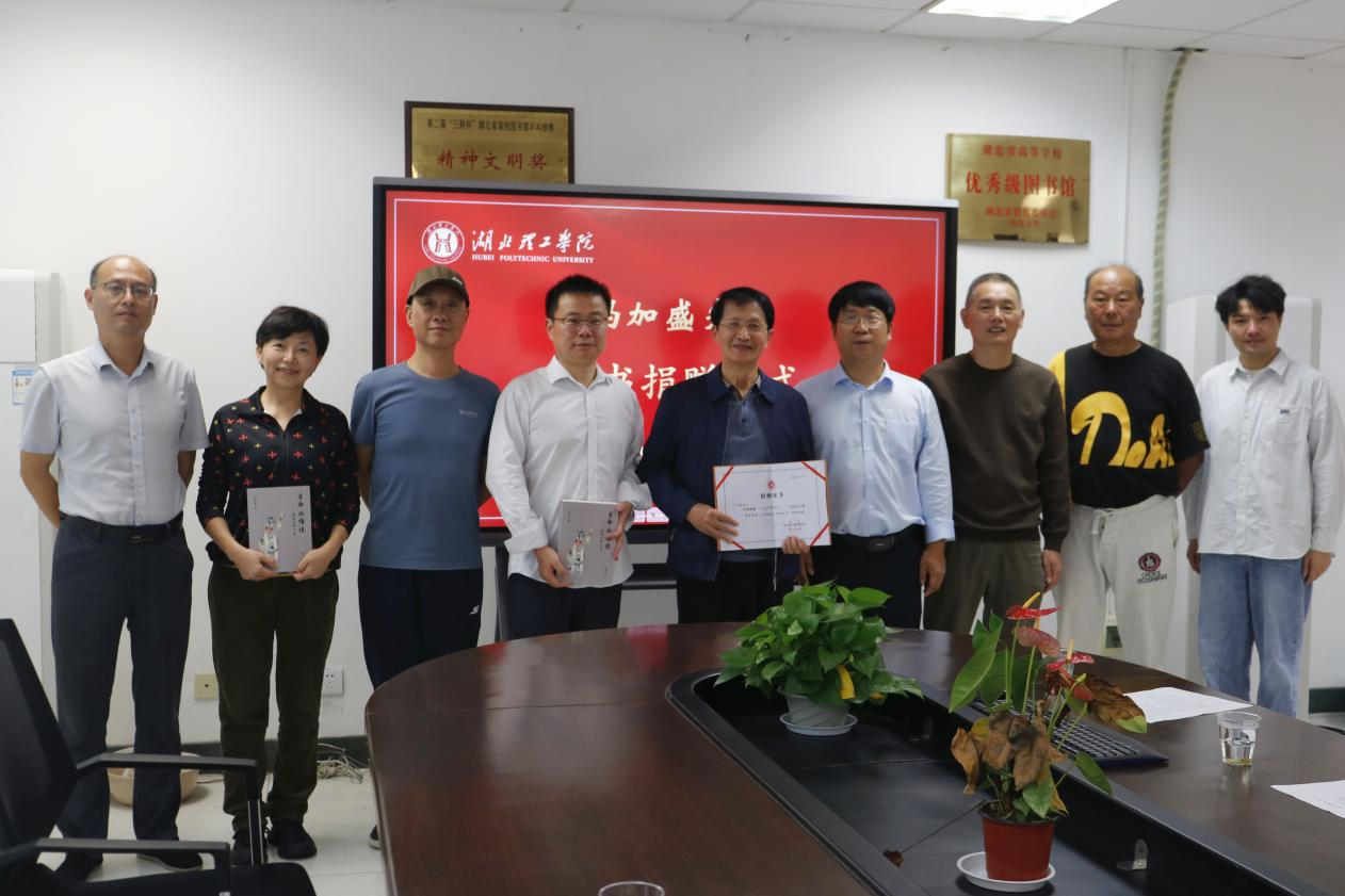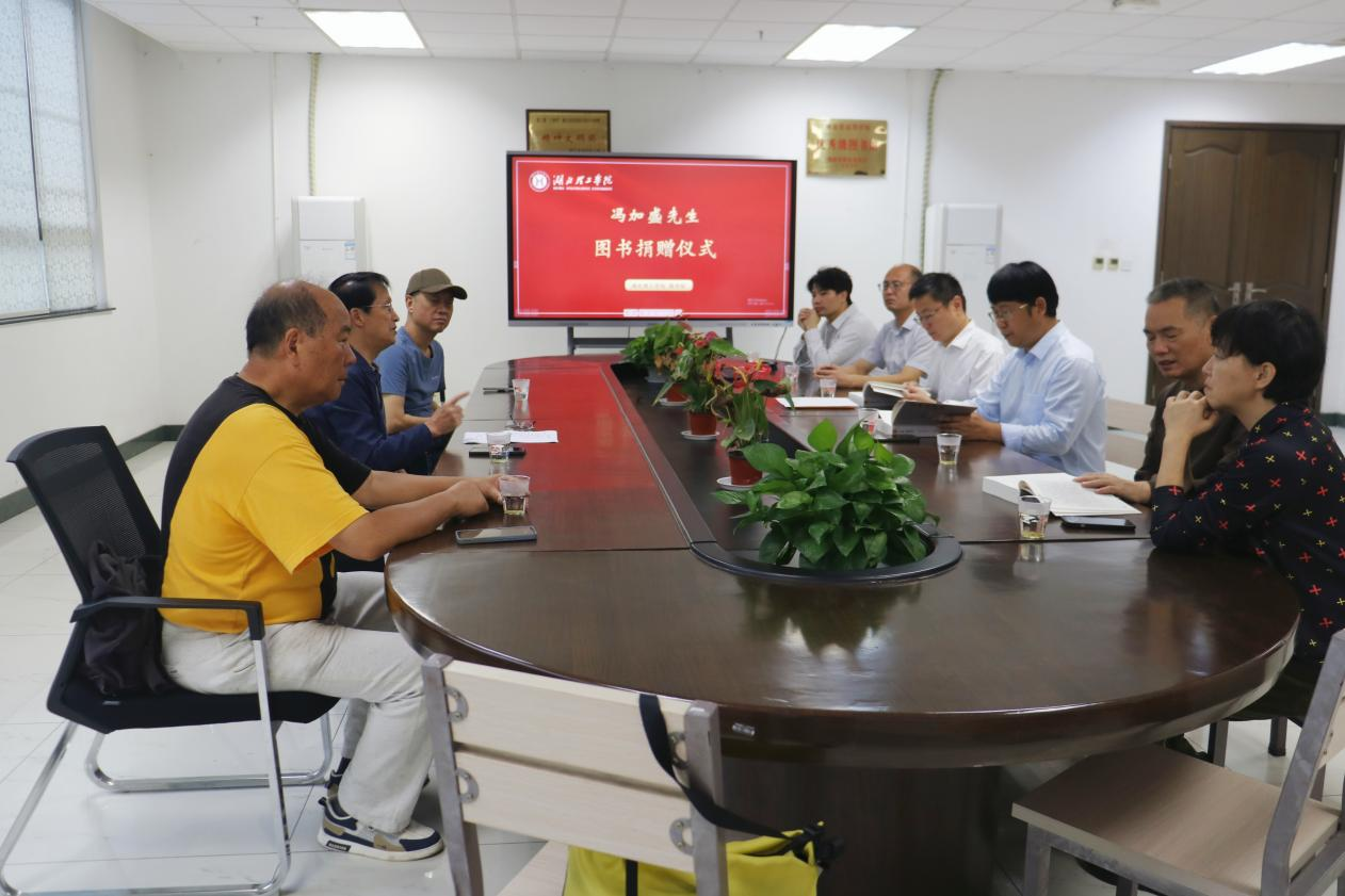 本网消息 10月16日上午,国家一级戏曲演员冯加盛先生图书捐赠仪式在湖北理工学院图书馆五楼会议室开展。仪式由图书馆馆长钟松主持,党委宣传部、图书馆、艺术学院相关同志共同见证。