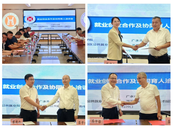 学校持续实施就业市场拓展“连线、织网、绣花”行动,推进就业友好城市(城区、园区、商会、企业)建设,进一步打造就业创业合作及协同育人平台。招聘会举办的同时,学校在创业大楼二楼创咖举行了洽谈会。外国语学院、电气学院、经管学院代表学校分别与广水市人社局、宜昌市夷陵区公共就业服务中心、洪湖市公共就业和人才服务中心签署就业创业合作及协同育人框架协议,通过“双选会+洽谈会”模式,提高招聘会质效,力促毕业生高质量充分就业。