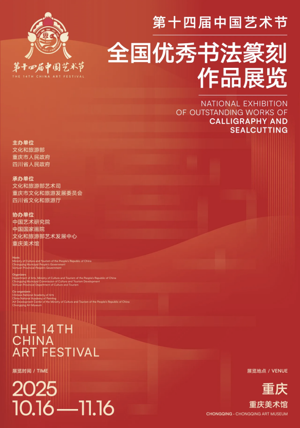 中国艺术节是我国规格最高、最具影响力的国家级综合性文化艺术盛会,本届中国艺术节系列展览由文化和旅游部、重庆市人民政府、四川省人民政府等单位联合举办。参展作品通过征集、推荐、特邀等方式遴选汇集,涵盖美术类作品、书法篆刻类作品和摄影类作品,其中书法篆刻类作品全国遴选320件。本届展览坚持百花齐放、百家争鸣方针,创作展示更多思想精深、艺术精湛、制作精良的书法篆刻作品,展现国家文艺新气象、文艺工作者新风貌,增强人民群众文化参与感、获得感、幸福感,汇聚起文化强国建设的强大力量。