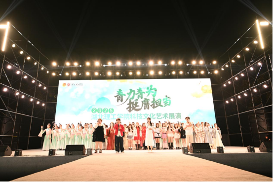 当晚18点30分,“青力青为·挺膺担当”文艺汇演在乐队表演《STEP 2》中拉开帷幕,迅速点燃全场氛围。随后啦啦操、唱歌、汉服秀、舞蹈、室内乐重奏等节目轮番登场,整场晚会高潮迭起、掌声如潮。各学院学生相继带来《不该》《爱要坦荡荡》《你从未离去》等歌曲,展现了我校学子的音乐才华和青春风采;《寄明月》《桃花笑》《街舞串烧》等舞蹈,以饱满的肢体语言和悦动的节奏诠释了青年一代的朝气蓬勃;汉服秀《沈园外》将传统服饰之美与书法艺术之韵完美融合,尽显东方古典雅致;室内乐双重奏《就是哪吒》旋律轻快活泼,赢得观众一致好评。整场晚会在全体演员共同唱响的《我爱你中国》中圆满落下帷幕,现场师生挥舞荧光棒齐声高歌,表达了对祖国母亲的深情礼赞和美好祝愿,现场掌声经久不息。
