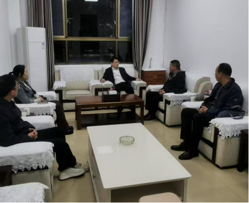 本网消息 11月13日,在乡村振兴工作队成员胡涛、汪定亮的陪同下,谷城县人社局副局长马光焰一行5人专程来校,就举办谷城县专场招聘会事宜进行深入交流。