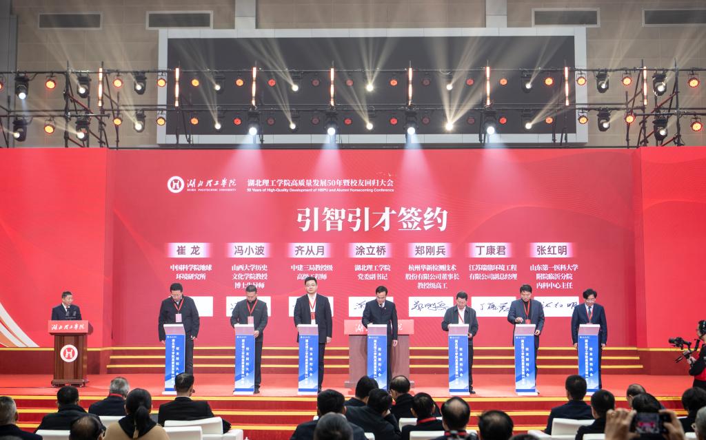 黄石市委书记郄英才发表讲话。讲话指出,湖北理工学院始终与时代共奋进、与黄石同呼吸,走出了一条扎根地方、特色发展的办学之路。50年来,学校实现从中专到专科、从专科到本科、从市属到省属、从培养本科生到培养硕士研究生的多次历史跨越,办学规模已超2.1万人,多项教育改革扎实推进。学校全面对接黄石产业发展需求,近三年校企合作超过1400项,科技成果转化落地430余项,毕业生年均留黄率达到21%,真正实现了城市与大学的双向赋能、彼此成就、共同承担。郄英才希望,湖北理工学院坚守初心、勇担使命,在服务地方发展中展现新作为,坚持社会主义办学方向,紧扣应用型办学定位,深化教育教学改革,提升科技创新和成果转化能力,深度融入和服务黄石的经济社会发展,加快建设特色鲜明的高水平应用型大学,为黄石加快建成武汉都市圈重要增长极提供人才和智力支持。他表示,市委市政府将坚定不移实施科教兴市、人才强市战略,营造更优环境,全力支持学校发展。希望广大校友心系母校、情牵黄石,期待大家发挥桥梁纽带作用,积极宣传黄石、推介黄石,带动更多的优质资源、技术和人才汇聚黄石,共享机遇、共筑梦想,市委市政府将为大家回归发展保驾护航;希望广大师生锤炼本领、奋发有为,在投身实践中绽放新风采;希望老师们潜心育人、严谨治学,担当起传播知识、启迪思想、培育新人的美好使命;希望同学们珍惜时光、增长才干,努力成长为栋梁之才。期待更多学子选择黄石、扎根黄石、建设黄石,在这片热土上点亮青春,成就梦想。