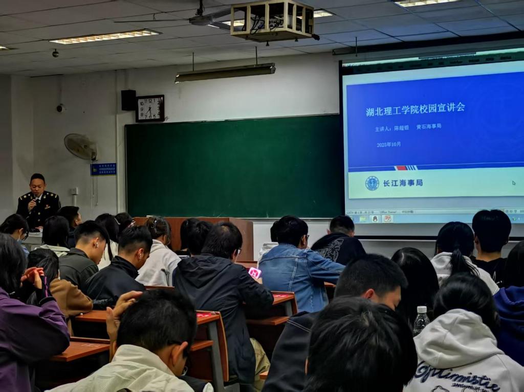 尹渊主任结合海事系统招录实际,系统解读了岗位特点与报考要求。他详细介绍了海事局在水上安全监管、船舶污染防治等方面的职责,建议同学们结合自身兴趣与专长,选择适配岗位以增强竞争力。尹渊特别提到,黄石海事局历年招录涵盖全国各地考生,鼓励同学们善用区位优势,积极把握机会。