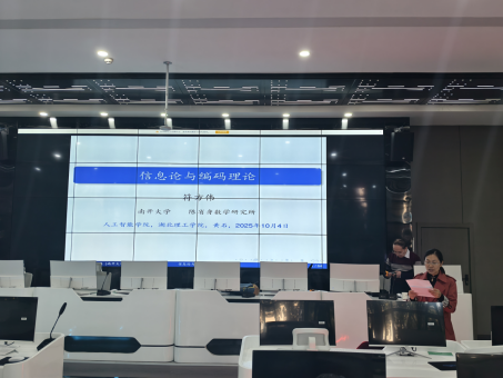 本网消息 11月4日下午,应人工智能学院邀请,南开大学陈省身数学研究所符方伟教授在智慧大楼数字安全实验室3001作主题为 “信息论与编码理论”的学术报告。人工智能学院院长余宏生、副院长许小芳、部分教师及学生参加本次报告会,报告会由副院长许小芳主持。
