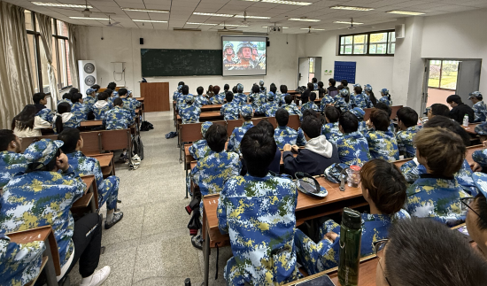 本网消息 为进一步强化我校新生国防观念,厚植家国情怀,11月9日上午,校武装部在教学楼组织全体2025级新生观看国防教育片《必胜》。