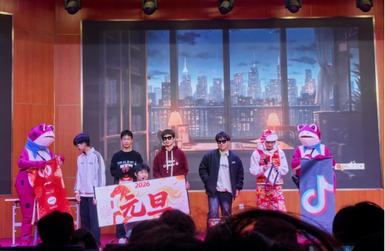 “新篇·绽放”篇章开启,文艺节目轮番登场:歌曲《大东北》《爱错》点燃氛围,独舞《彩云之南》轻盈灵动,小品《我的论文被抖音拐走了!》《同学会》笑点与共鸣兼具,相声《上了大学之后》、舞蹈串烧《元春舞颂》《锦舞迎春》等节目各展风采。期间穿插微信扫码抽奖、飞花令、打电话等互动环节,现场笑声与掌声交织,将晚会气氛推向高潮。