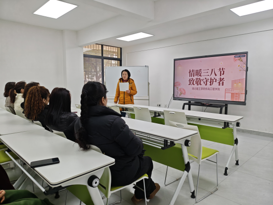本网消息 三月春风暖,巾帼绽芳华。3月6日上午,机电工程学院于毓成一站式学生社区开展了“情暖三八节,致敬守护者”妇女节慰问活动,向默默坚守在宿舍服务一线的宿管阿姨们致以节日的美好祝福和崇高敬意。机电工程学院分管宿舍的辅导员、各楼栋宿管员以及学生代表共同参与了此次活动。