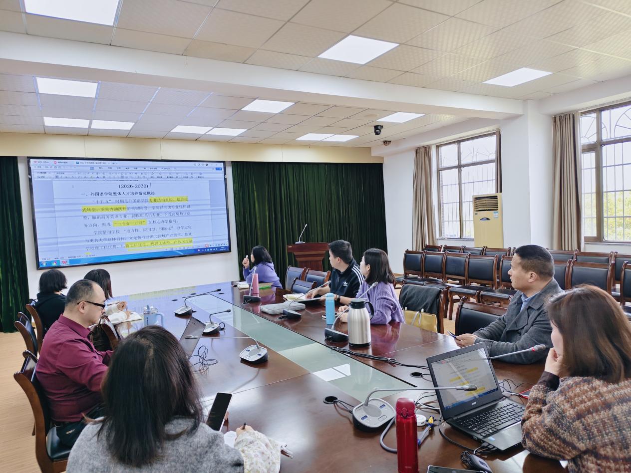 本网消息 为科学编制学院“十五五”事业发展规划,明晰未来五年发展路径,3月27日下午,外国语学院在X2-304会议室召开规划论证会。学院领导班子、学术委员会、教学委员会成员及各教工党支部书记参会,共同为规划编制凝聚共识、建言献策。