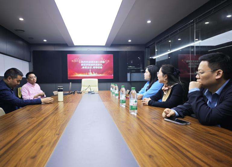 在虚石灵境(武汉)科技有限公司,调研组深入了解虚拟直播、XR 沉浸式场景、AI 智能剪辑、数字人等前沿技术在教育传播、内容生产、直播运营中的应用,并就技术赋能实验室建设、校企联合开发课程、共建实训项目、学生实习就业等达成初步合作意向,为实验室引入行业先进技术与产业资源提供有力支撑。