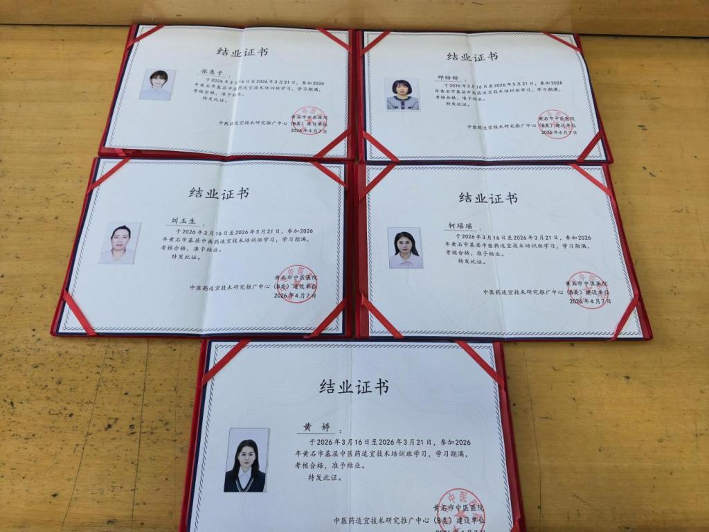 本网消息 近期,2026年黄石市基层中医适宜技术培训班在黄石市中医院举办。湖北理工学院医院高度重视此次培训,由黄婷护士长带队,组织科室年轻护理骨干柯瑶瑶、刘玉生、张惠子、邱盼盼等同志参加培训,系统学习多项中医特色外治技术,理论与实操并重,以学促练、以练提质,推动中医护理技术在校医院中医临床规范落地。