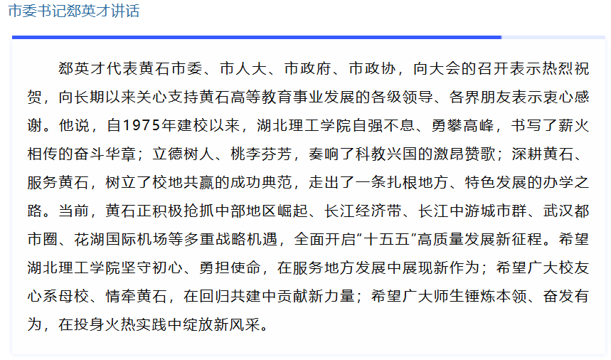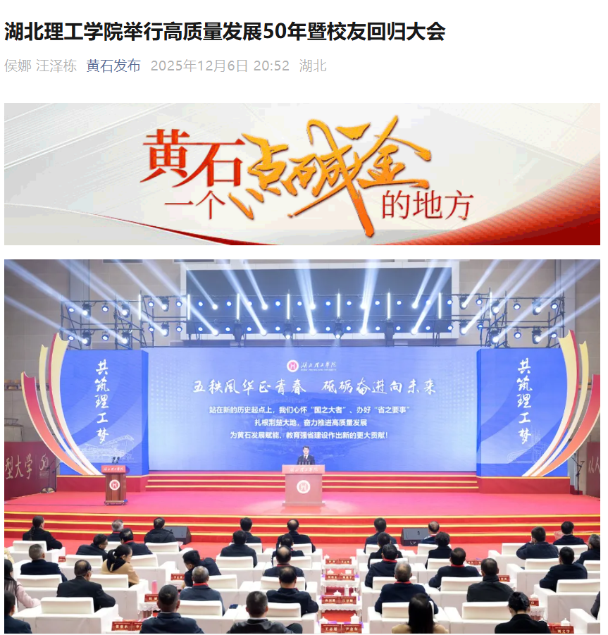 黄石发布公众号:湖北理工学院举行高质量发展50年暨校友回归大会