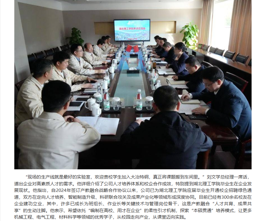 湖北日报网:让“书香情”融入“钢铁志” 大冶特钢与湖北理工学院共绘产教融合新蓝图